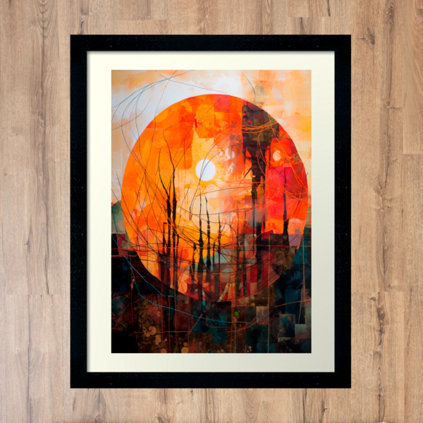 Color print, abstract art, lyrical abstraction, warm colors, orange, PRINTABLE, environment with elegance, serenity and harmony.