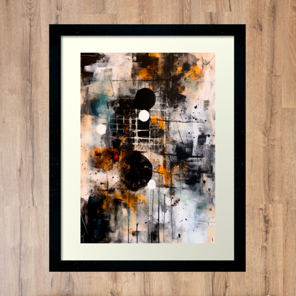 Color print, abstract art, lyrical abstraction, PRINTABLE, black, white, with amber traces, environment with elegance, serenity and harmony