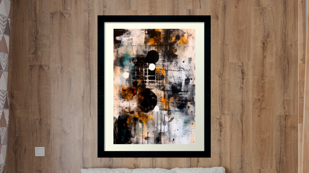 Color print, abstract art, lyrical abstraction, PRINTABLE, yellow, golden, black, environment with elegance, serenity and harmony